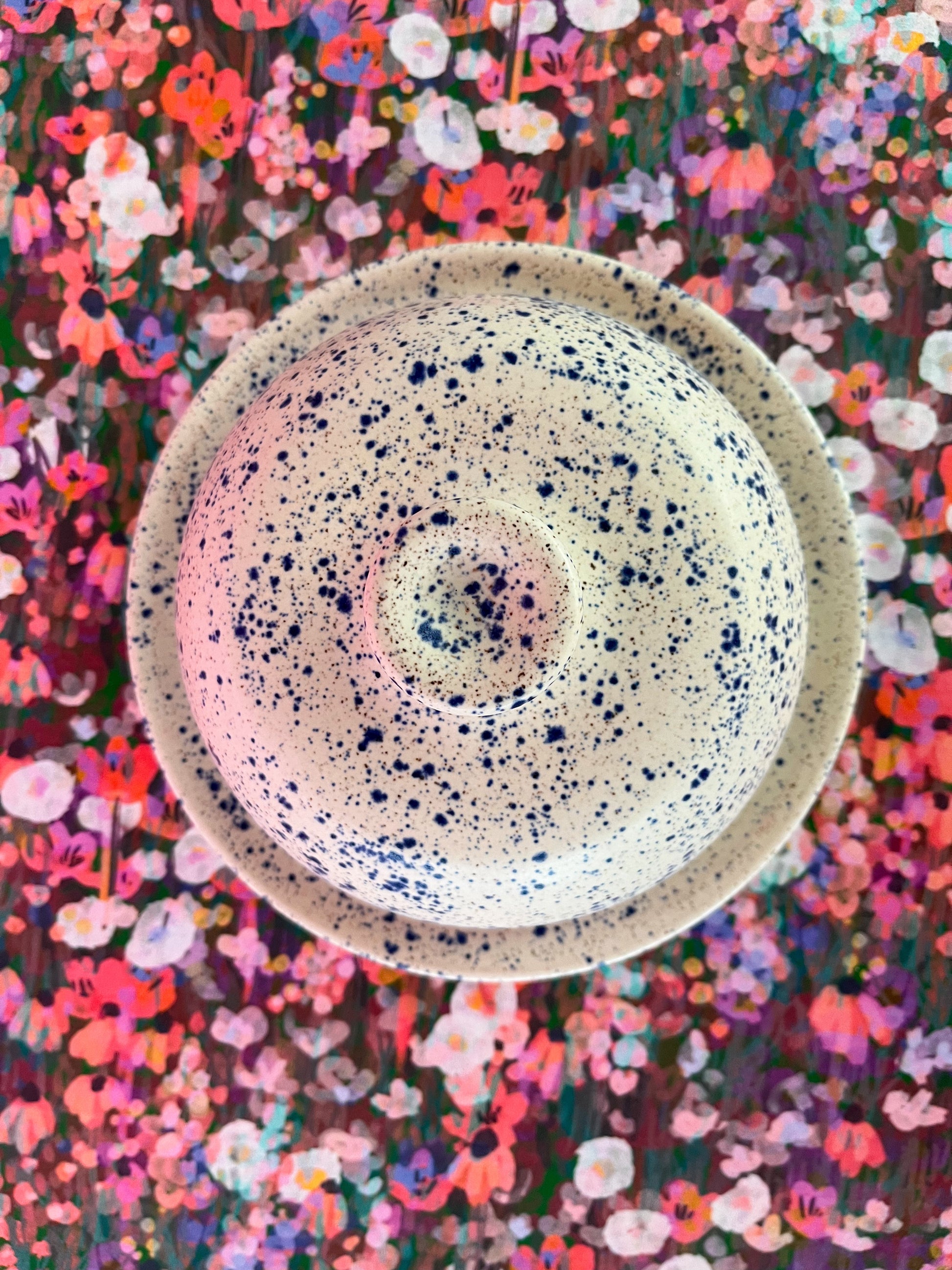 • wheel thrown plate and lid on speckled clay