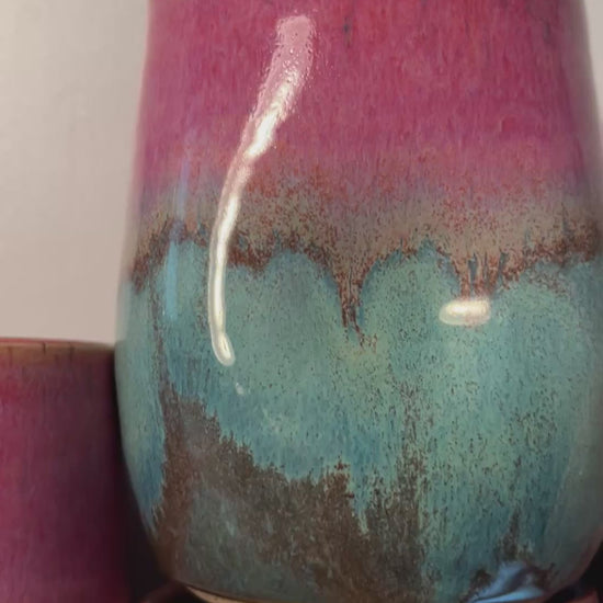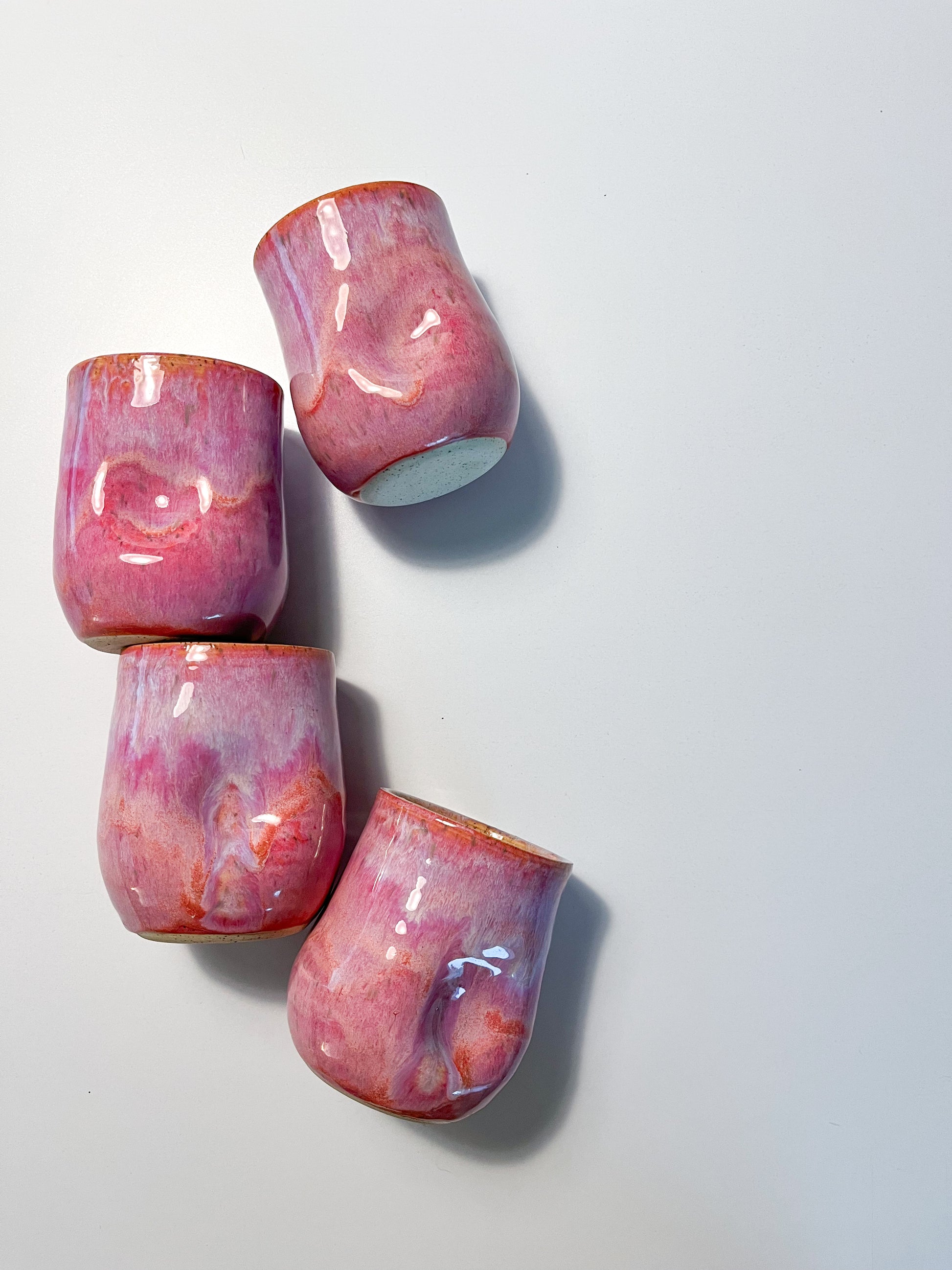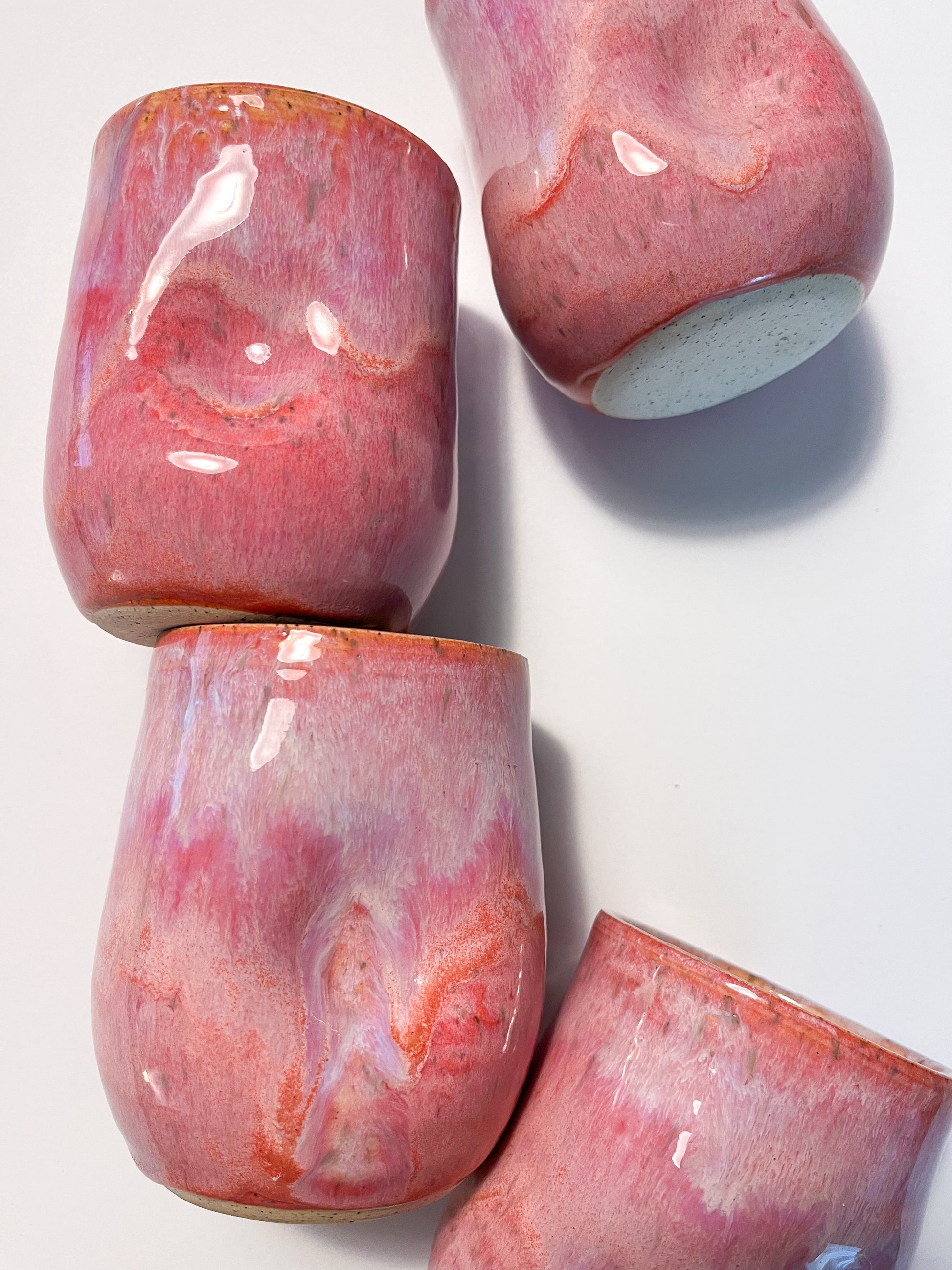 • wheel thrown tumblers on speckled clay