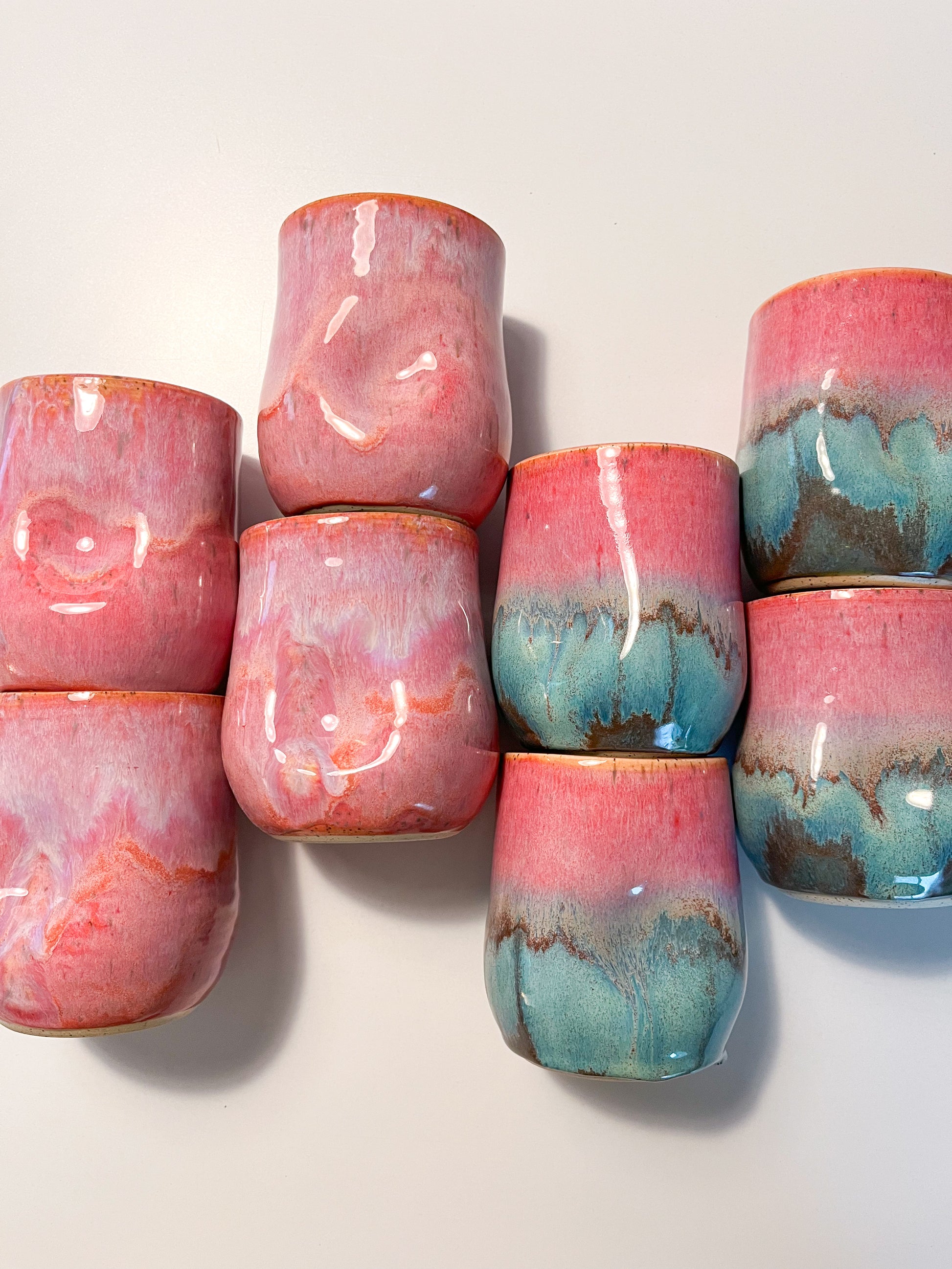 • wheel thrown tumblers on speckled clay